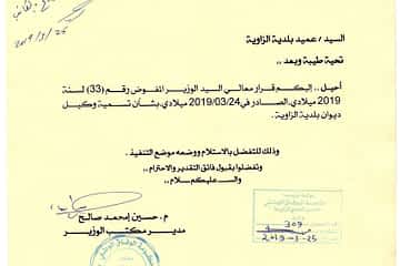 بشأن تسمية وكيل ديوان المجلس البلدي لبلدية الزاوية
